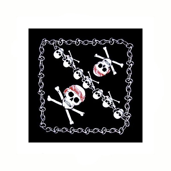 These bandannas come in 4 different styles: Skulls on fire, Jolly Roger with a noose rope in the center, Jolly Roger with a pink headband, and Skull with Spiders