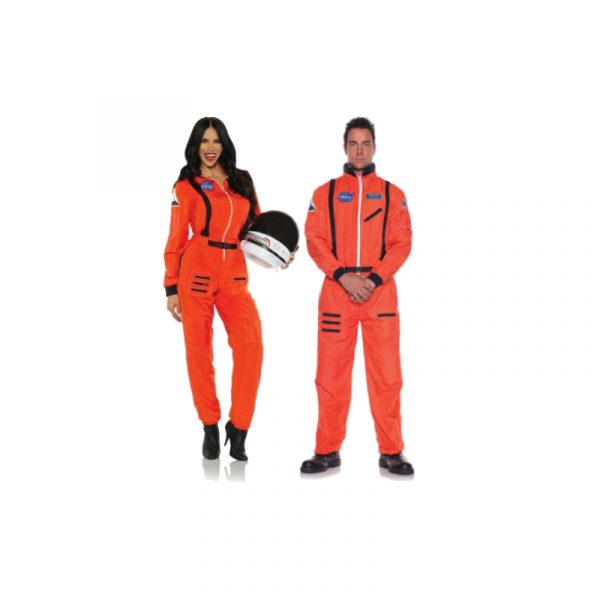 Astronaut Jumpsuit Adult Costume. This orange astronaut costume is embroidered with NASA, commander, and flag patches. It makes a great Halloween costume, or theme party outfit. Astronaut costume is available in two men’s sizes.