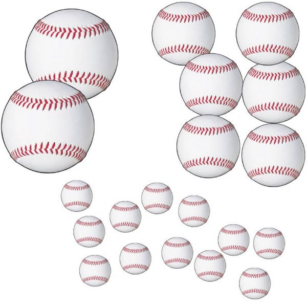 Package includes twelve 4″, six 8″, and two 12″ round baseball cutouts, 20 baseball cutouts altogether. These round white cardboard cutouts feature red baseball stitching. Hang them or use them on tables or for place settings. Perfect for a Cincinnati Reds or Baseball Party.