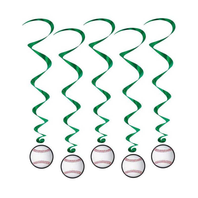 These Baseball whirls are decorative hanging ornaments designed to add a sporty touch to any baseball-themed party or event.