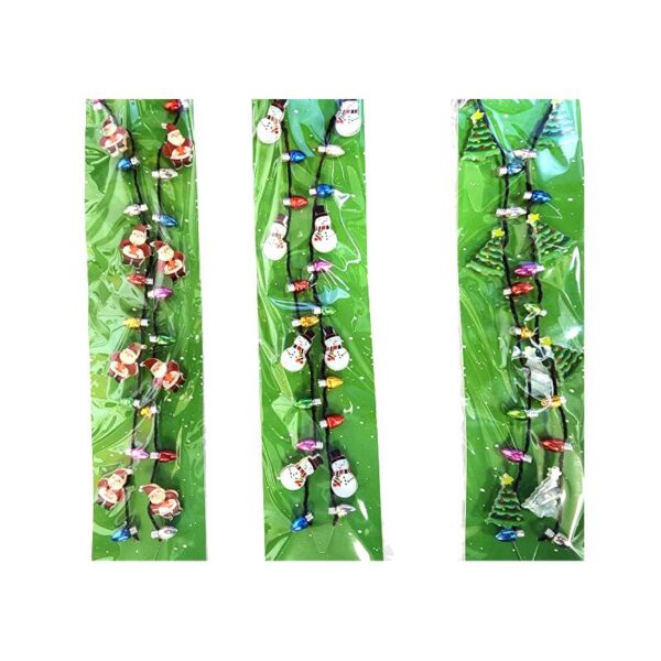 Battery-Operated Mini Christmas Figures Light-Up Necklace. This festive holiday light up necklace will go great with any holiday outfit.