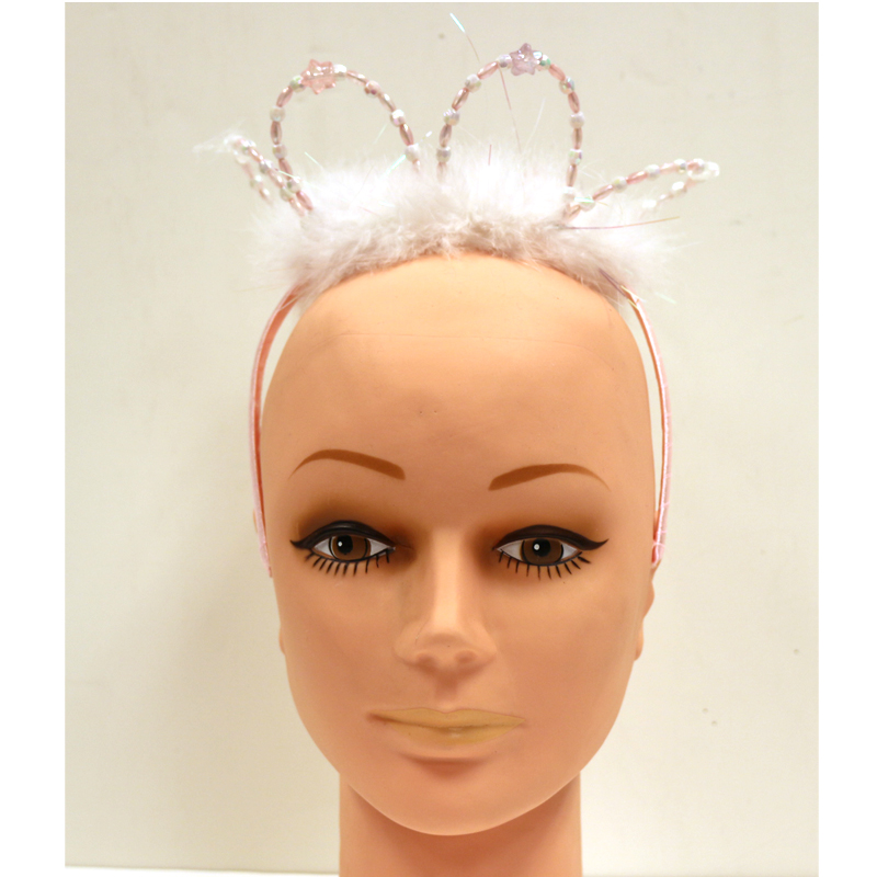 Perfect for a princess this Pink Beaded-Top Tiara Headband Crown with White Marabou looks great on adults and children! Wear as part of a Halloween Costume or to accessorize a beautiful ball gown.