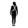 The ping pong ball is an adjustable apron to fit people small and large. The cup is a tunic you slip on over your head. It fits up to 6′ 200 lbs.