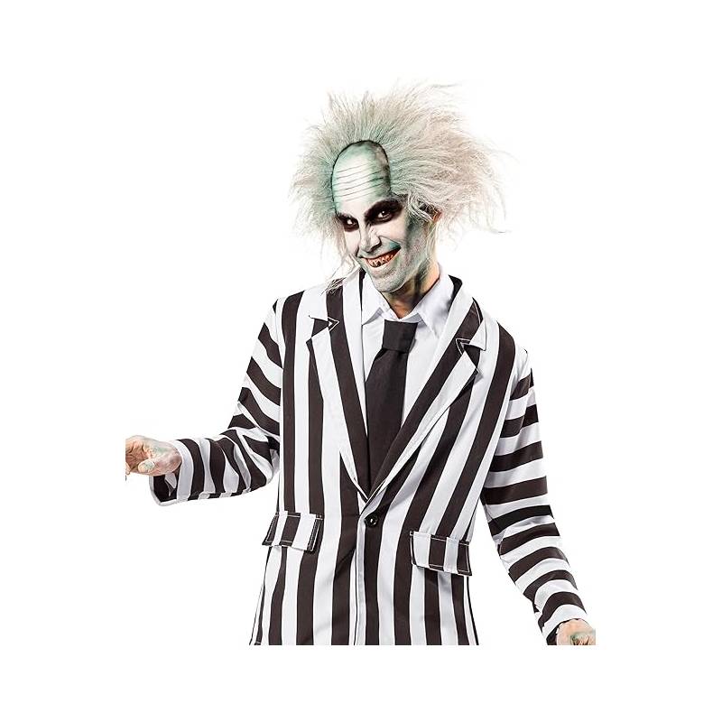 There are other BeetleJuice wigs, but this is the officially licensed Beetlejuice wig. It features a latex cap. Add your own makeup to complete your look. For best results remove costume wig from package and style it before putting it on. One size: designed to fit most adults and older teens.