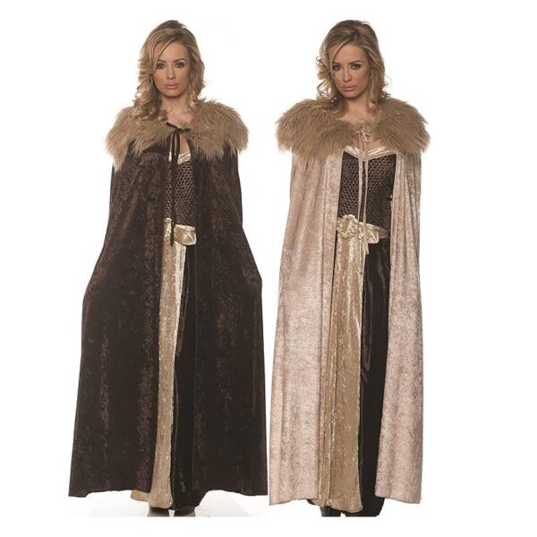 • Versatility: This beige renaissance cape with faux fur collar can be a great base piece for a variety of costume ideas. Depending on the accessories, it could be suitable for a royal or noble character, a historical villager, or even a witch or fantasy character.