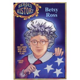 Betsy Ross Disguise Kit includes flag, mop hat and wig.