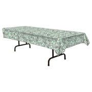 This “Big Bucks” table cover is made of plastic and has pictures of a variety of denominations of dollar bills all over it. It measures 54″ X 108″ and is rectangular. It is large enough for a banquet table, or cut it in half to use for 2 card tables.