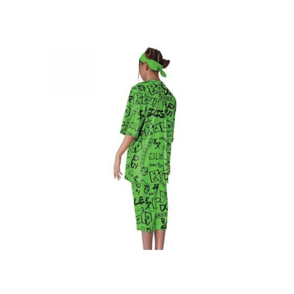 Billie Eilish Child Costume includes a top, shorts, head wrap and face mask. This American singer/songwriter became famous in 2015 with her song “Ocean Eyes.” The matching green double bun wig is an available optional accessory.