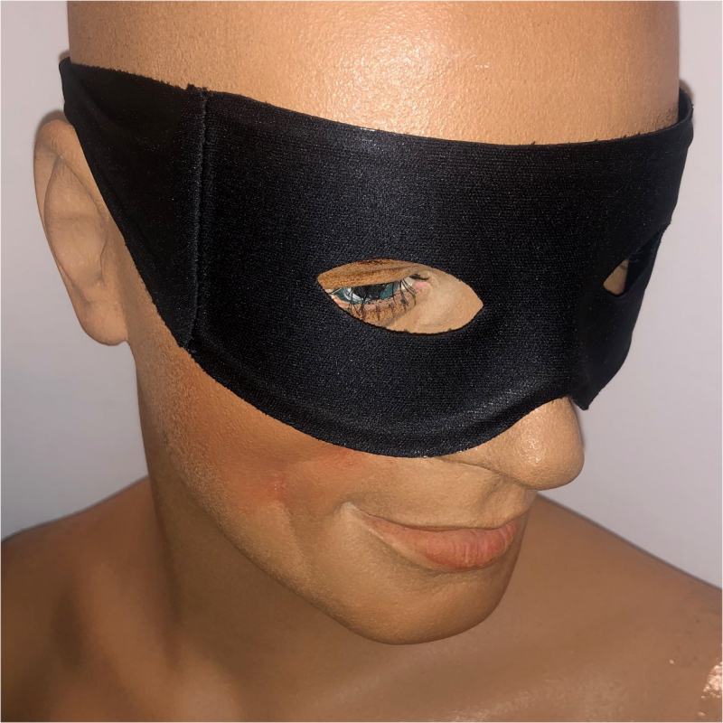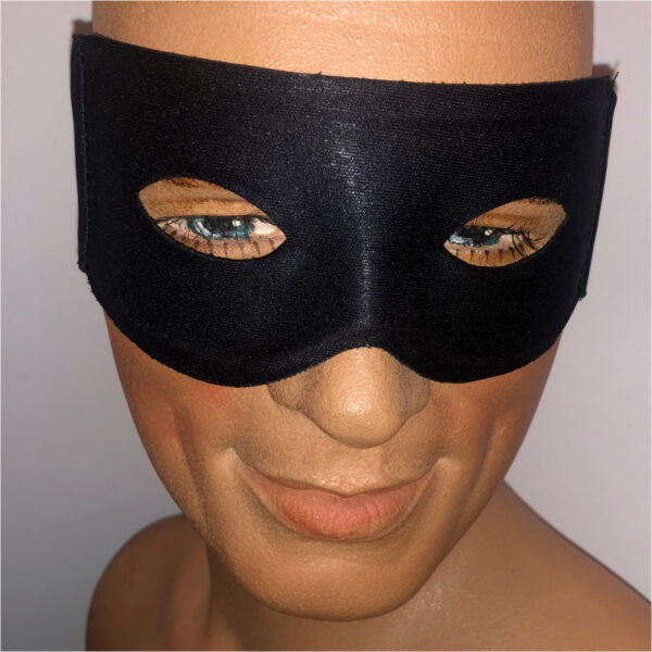 Black Fabric Lone Ranger Half Mask with Ties is made of fabric. The mask itself is structured. Two loose pieces of fabric tie around the back of your head.