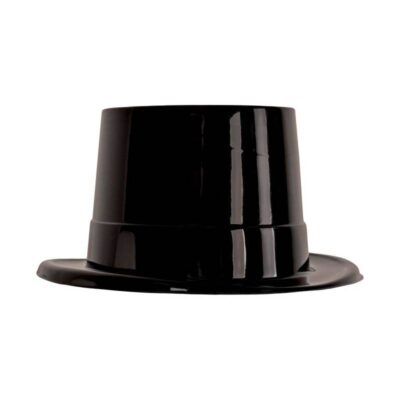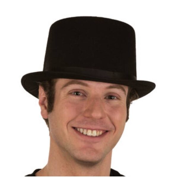 This black top hat is perfect for a dance routine or costume. It is made of heavy black felt and features a black elastic comfort band.