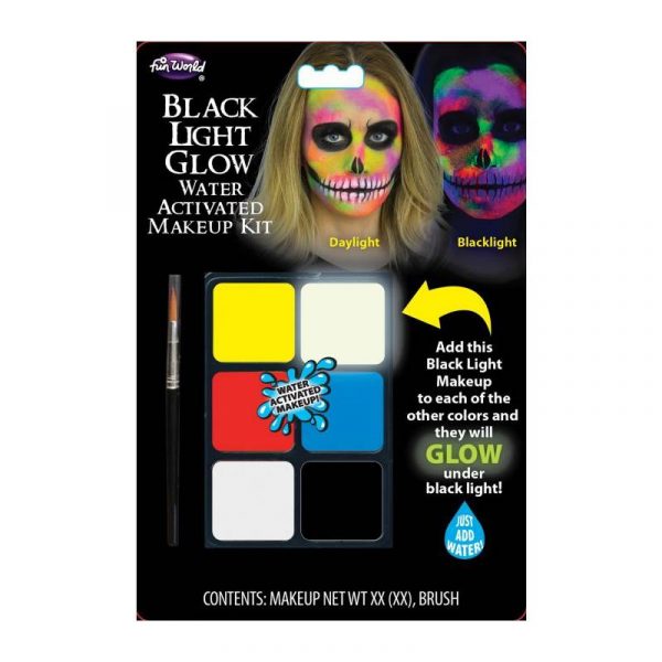 Black Light Glow Water Activated Makeup Kit brings color to the night. Wear this to Halloween parties, concerts, or horror houses.