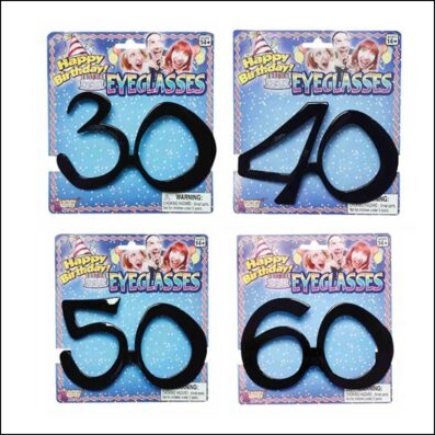 Choose black Age-Related Eyeglasses available in number 30, 40, 50, or 60. Perfect for celebrating that milestone Birthday.