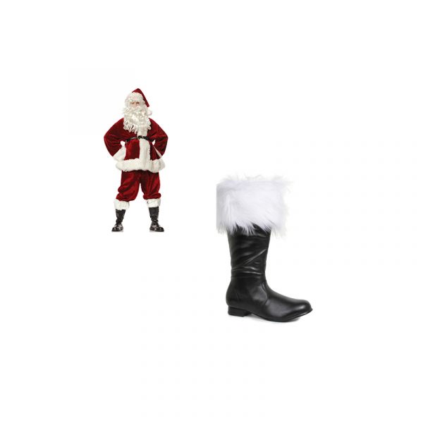 Wear Black Santa Boots with White Fur Trim with a Santa Suit for the realistic look! Perfect for a Santacon costume or mall Santa. Men’s Sizes Small (8-9) Medium (10-11), and Large (12-13).