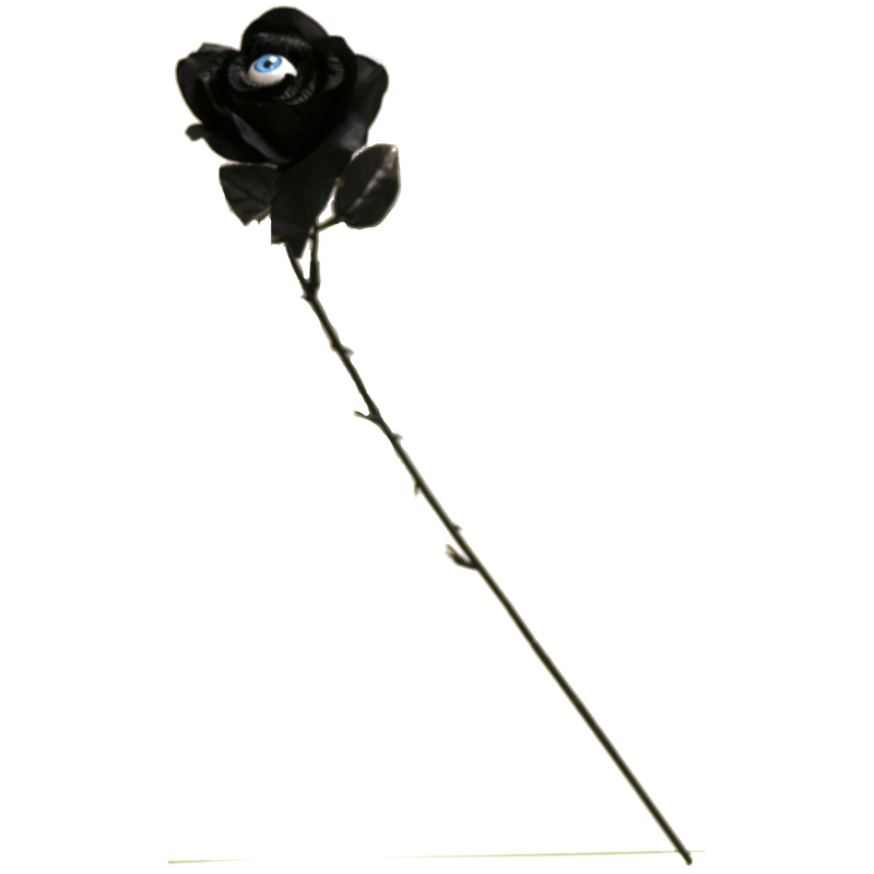 Black Silk Long Stem Rose with Eyeball brings gothic and classic Halloween decorations together. Use this for decorations or to complete your costume.