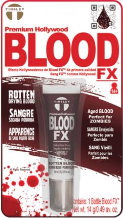 Spray it here and there to look as creepy as you want to. This Spray Blood make-up is a very deep red. Remove with soap and water.