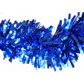 Blue Garland. Festooning garland is a versatile and showy metallic garland for indoor or outdoor use. Can be used for decorating parade floats, for in-store displays, or for home or school decorations. Each garland is 4″ x 15′.