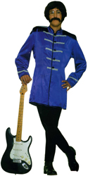This British explosion jacket is available in 4 colors – royal blue, purple, red, or green. It is reminiscent of the kind worn by the Beatles. It features a satin jacket with silver and black trim. Combine this with a pair of black pants, wig, moustache, side burns, and glasses for a complete Beatles looking Halloween costume, or theme party outfit. It is available in one size, fits men up to chest size 40.