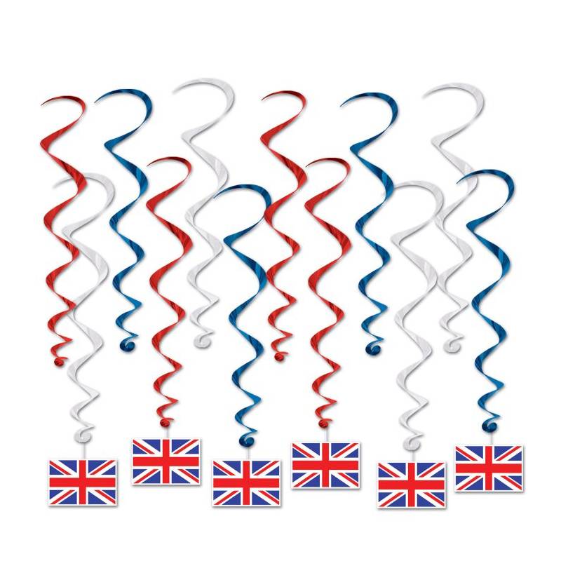 British Flag Hanging Whirls are great for British themed parties, or other creative ideas.