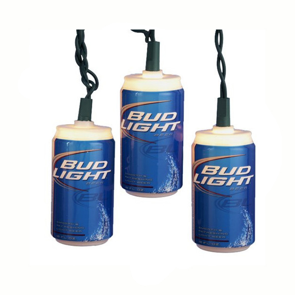 Bud Light Cans 10 Electric Light is the shape of little Bud Lights. Licensed by Anheuser-Busch, this set can be used for indoor or outdoor lighting.