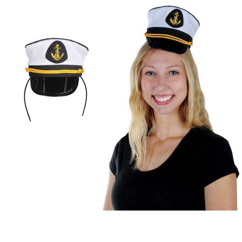 White Yacht Captain Hat on removable Headband. Wear as a costume accessory or when you pilot your boat to impress your friends! One Size fits most.