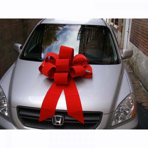 A Giant Red Velvet Car Bow is an elegant touch for your gift anytime of year. Whether it is for anniversary, birthday, Christmas, Hanukkah, graduation, Valentine’s Day or just because, tie it up with a huge bow and make your love and your gift obvious!