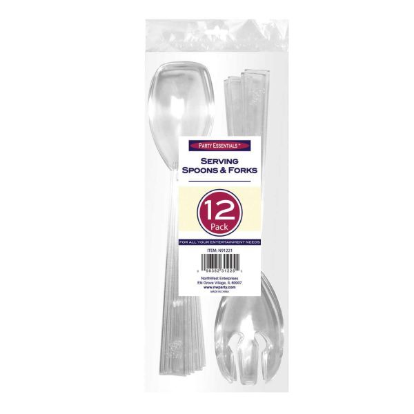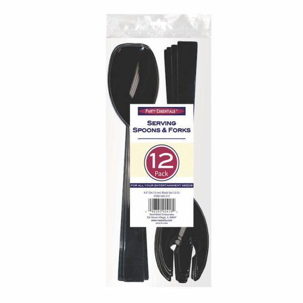 Each package contains 12 pieces measuring 9.5″ each: 6 serving forks and 6 serving spoons.