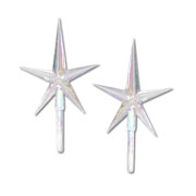 There are two clear iridescent 2.75″ plastic star tree toppers in each package.