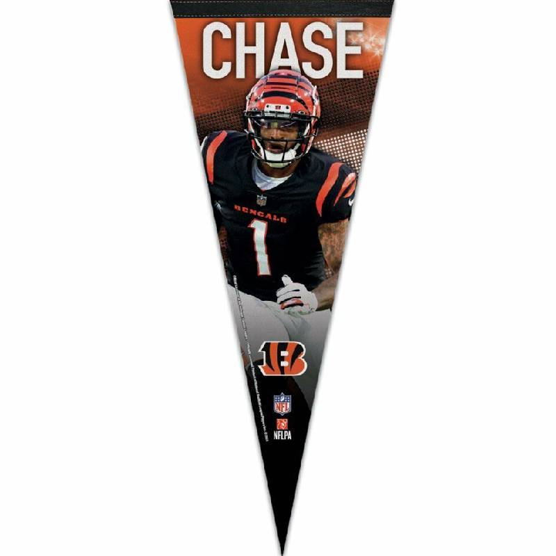 Decorate for your Bengals party with Chase Soft Felt Photo Pennant. These are a timeless party decorations. The Premium Quality Pennant is a throwback to wool pennants. Premium Quality Pennants will not wrinkle or crease like classic pennants.
