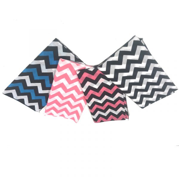 This 21″ square cotton chevron-print bandanna makes a great face mask! Wear it as a scarf or neck tie, too! Perfect for school spirit, costumes, head scarves, unique gift wrapping, party decorations, cloth napkins and more!