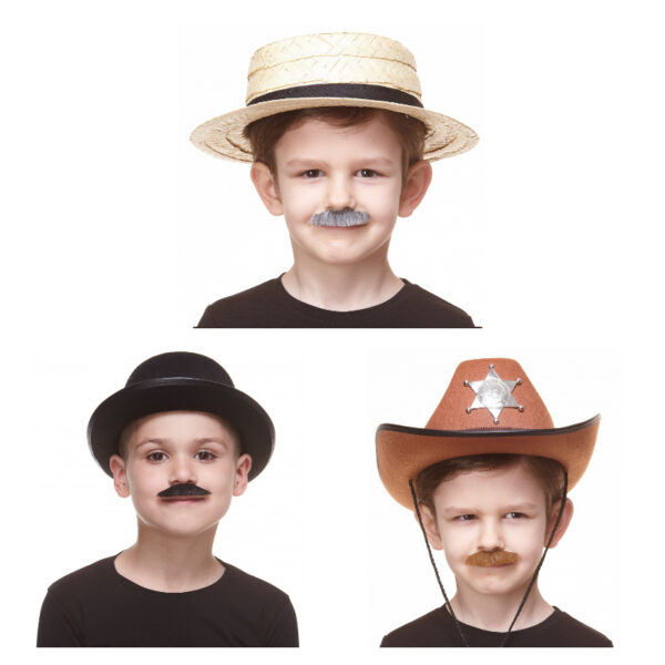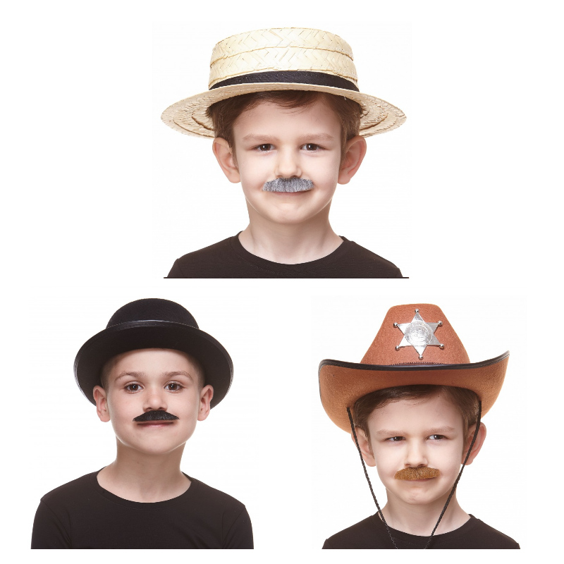 Wear the Gray/White Narrow Mustache for the 100th day of school! Any color works for historical figure or character costumes! This self-adhesive mustache is handmade and attaches by means of a specific medical 3M plaster (on the back). The anti-allergic plaster does not irritate the skin, is easily stuck and removed.