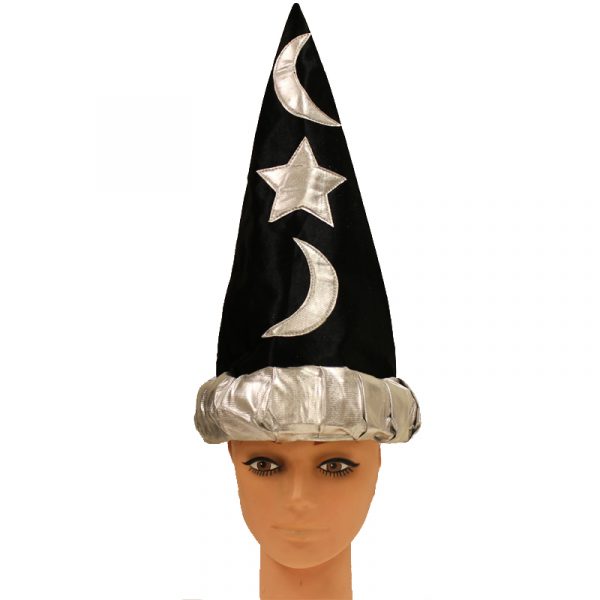 Buy your child this Black and Silver 17″ tall Wizard Hat to wear to a theme birthday party or for a Halloween Costume accessory!