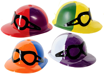 Plastic Jockey Helmet. Colorful plastic jockey hat makes a great costume accessory, or party decoration for a horse race party. Fits child or small/medium adult head.