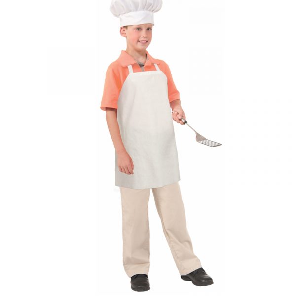 Childs White Paper Chef Apron – One Size. Your little chef can practice along with the stars on kitchen reality shows wearing this white paper apron and a child’s chef hat.