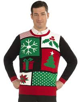 You can win the Ugly Sweater contest with this one! It is a soft knitted acrylic styled very loose to fit over other clothing.
