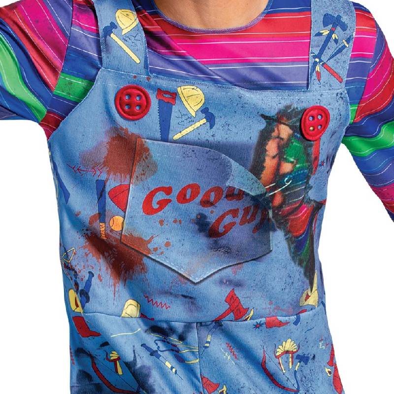 Chucky Officially Licensed Adult Costume is perfect for Halloween, themed parties, drag, cosplay, theatrical productions, and more.