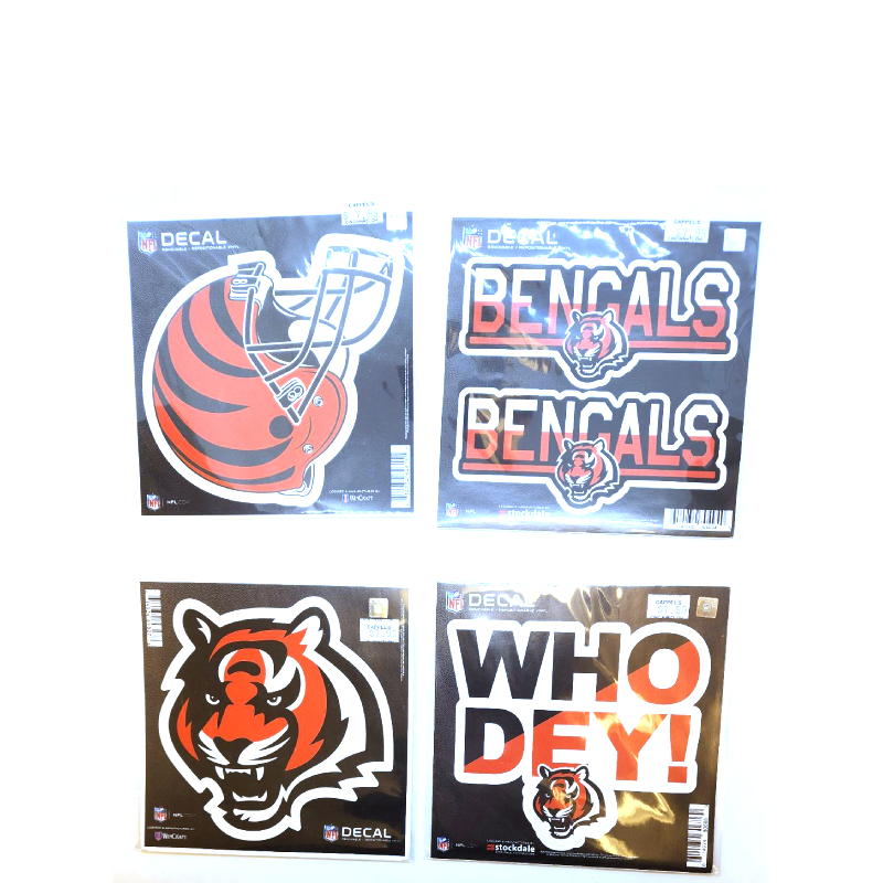 Choose a 6″ x 6″ Bengal Tiger decal, Cincinnati Bengals Helmet decal, “WHO DEY” decal or “BENGALS” decal. Each decal features an officially licensed NFL image. Sold individually.
