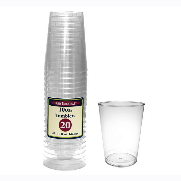 These disposable tumblers make for an easy clean up . They are 10 ounces each. These tumblers are sturdy and a great option if you want to have a nice looking set up with out worrying if your favorite china will be broken. Also, these would be perfect for a camp out, cook out, and for any type of party!