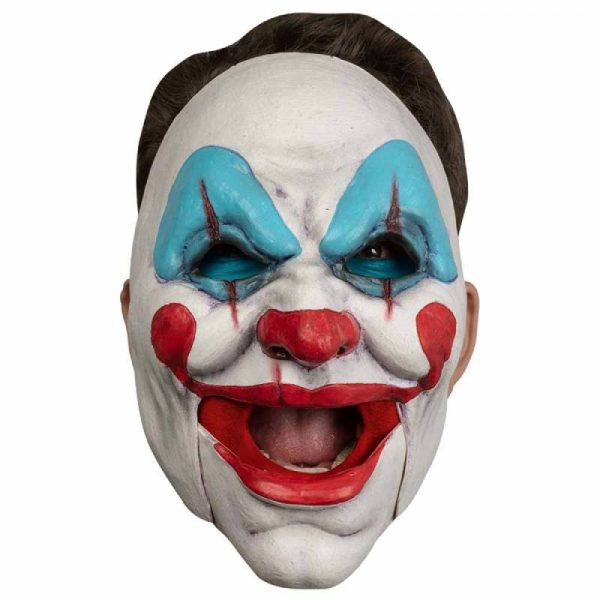 Clown Mask with Moveable Jaw is a creepy latex clown mask, with classic style makeup. The jaw of the mask is in two sections, so the jaw moves with the the wearer’s mouth. The mask has a fully open mouth and open eye sockets. It attaches to the back of the head with a thin elastic band. Approx. 8 1/2 inches from forehead to chin. Wear these for Halloween, cosplay, theatrical productions, and themed parties through out the year. Clown around and terrorize the neighborhood.