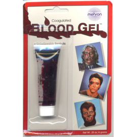 Mehron’s thickened syrup-based blood gel comes in a .25 oz tube. It provides a thick blood like substance that truly stays in place.