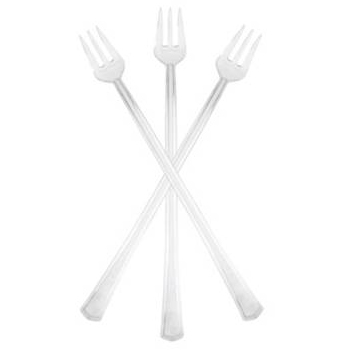Cocktail Forks. 6″ clear plastic cocktail forks are perfect for serving appetizers, shrimp cocktail and even some desserts.