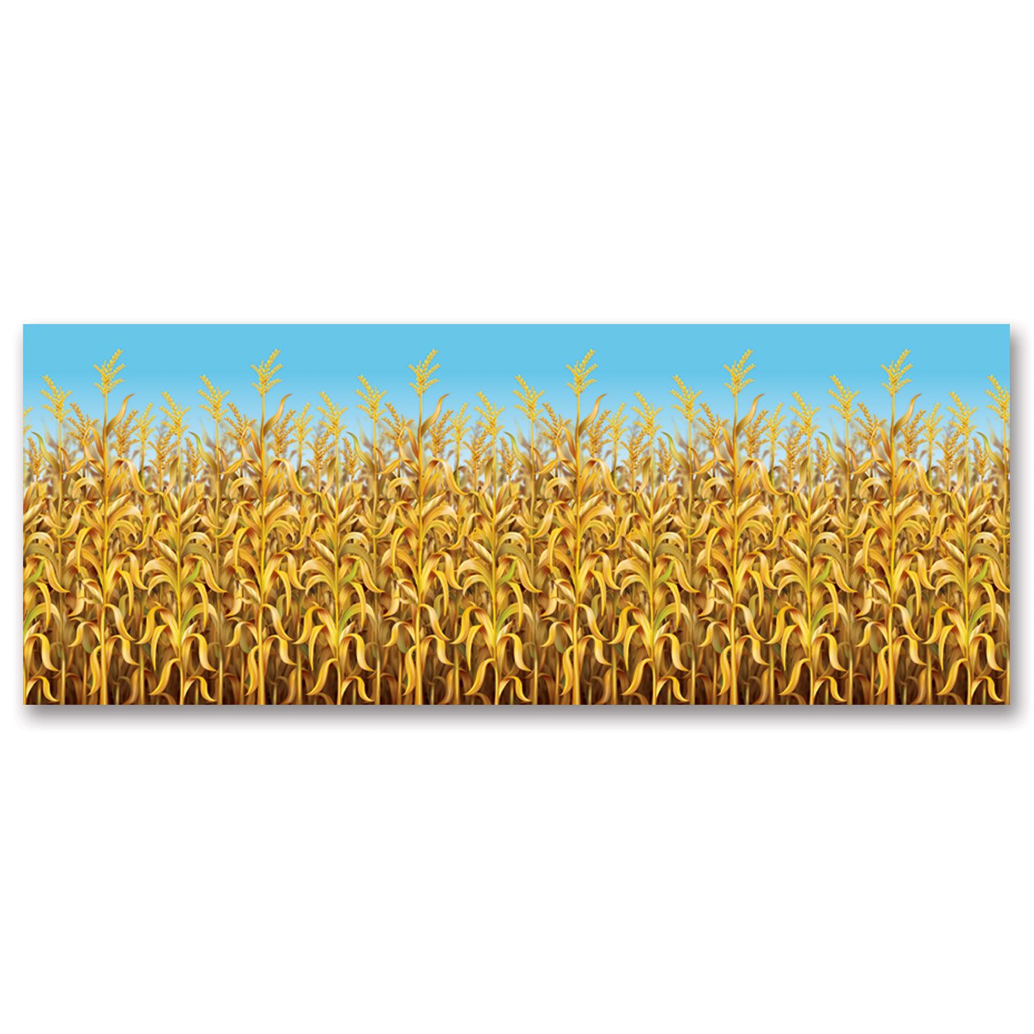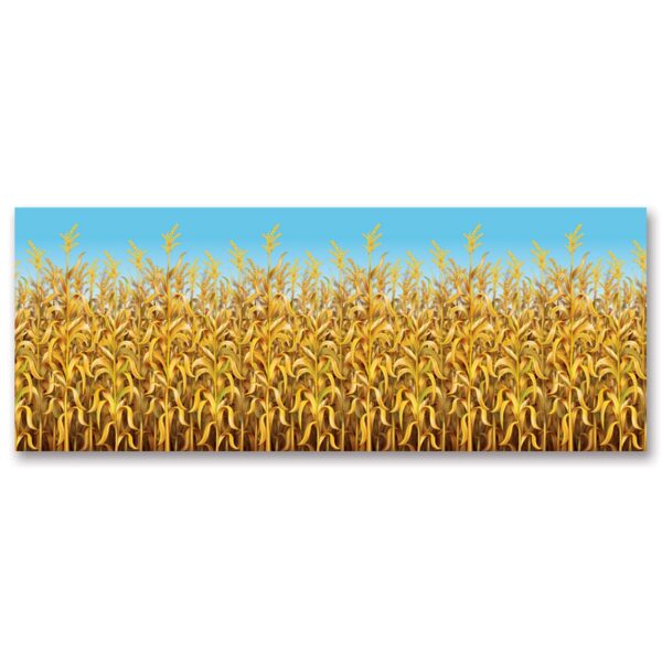 Want a backdrop that goes along two of your walls? Check out this “Field of Dreams” style corn stalk backdrop! It measures 4′ tall by 30′ long.