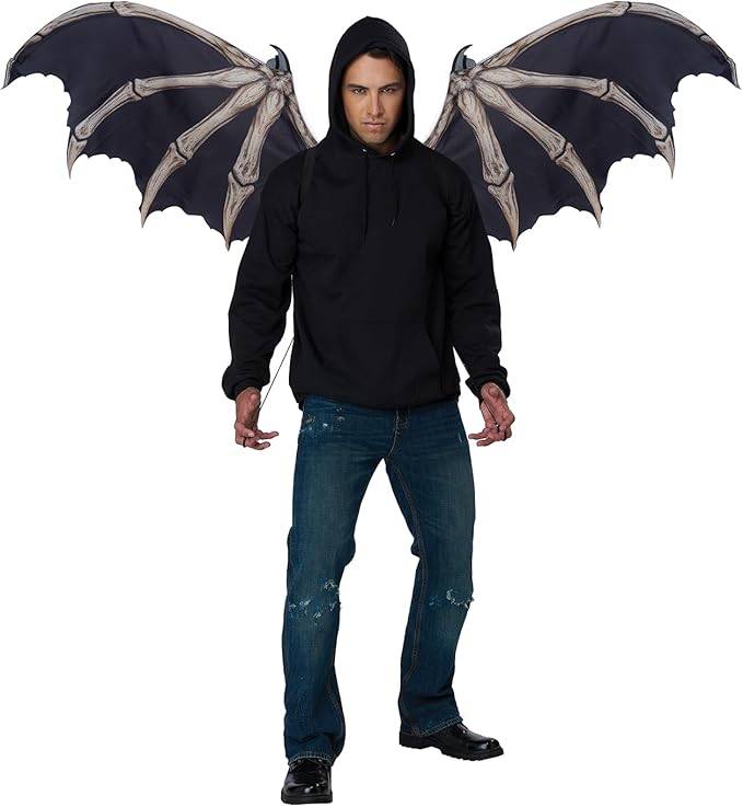 Cosplay Printed Fabric Skeleton Bone Expanding Wings. Wear these wings for many different occasions such as Halloween, themed parties and events, and more.