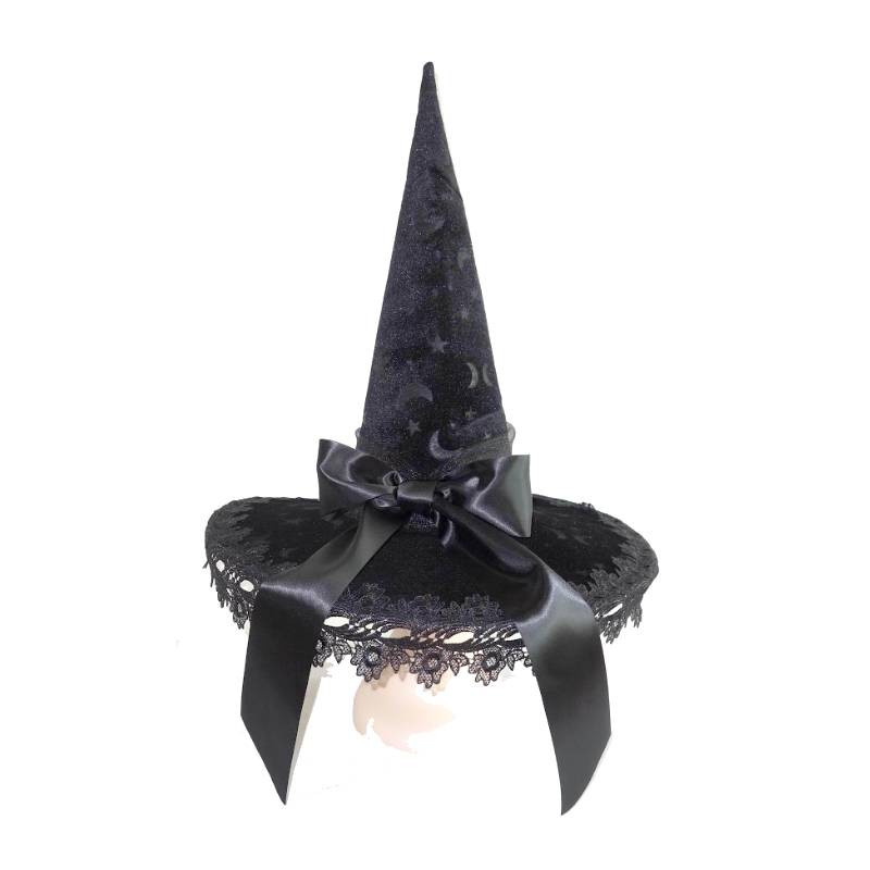 Wear Costume Deluxe Fabric Celestial Witch Hat w Bow for Halloween, themed parties, costume contests, plays, drag, theatrical performances, and more.
