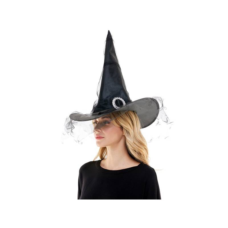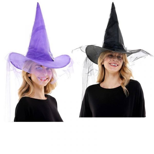 Costume Fabric Witch Hat w Netting combines classy with classic. It is light-weight and comfortable to wear all night. This magical hat can be worn for wizard portrayals and witch costumes. Wear this for Halloween, themed parties, cosplay and play productions.