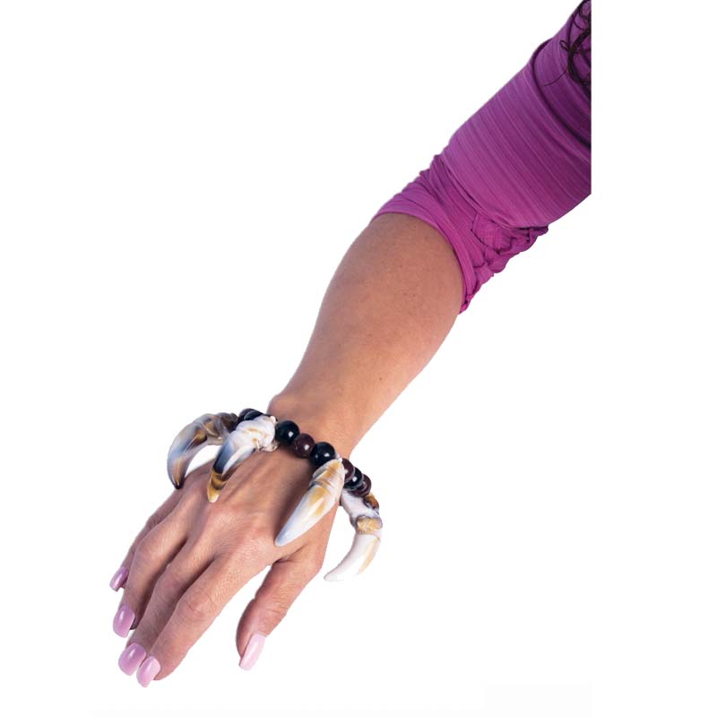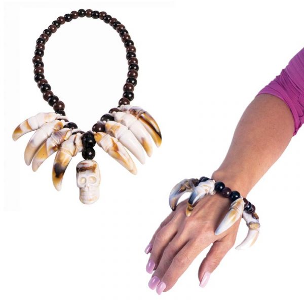 Choose from a costume Ivory Voodoo Necklace or Bracelet! Or buy both to complete your witch doctor Halloween Costume! They have brown and black plastic beads and ivory-colored plastic talons.