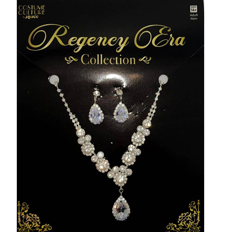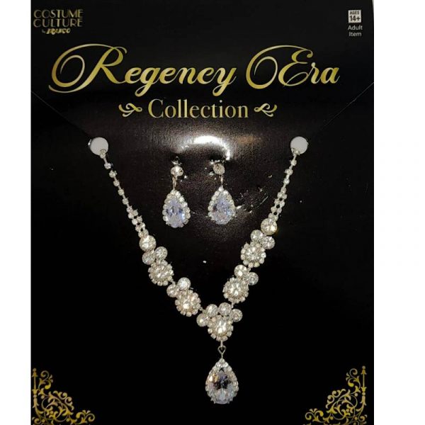 Costume Jewels Rhinestones Earrings & Necklace Set is glistens in the lights. You are sure to catch the attention of everyone who has the pleasure of being in your presence. Diamonds are a girl’s best friend. Wear this for Halloween, drag, theatrical productions, reenactments, cosplay, school plays, themed parties and more.