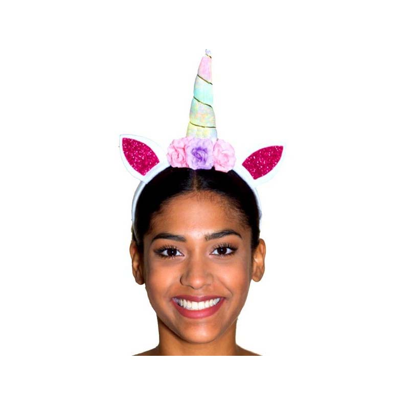 Wear a Costume Light-up Unicorn Headband to pass out candy on Halloween! It features pink glittered ears and pink and purple flowers! The horn glows in soft changing colors when lit! Perfect for a unicorn themed birthday party!