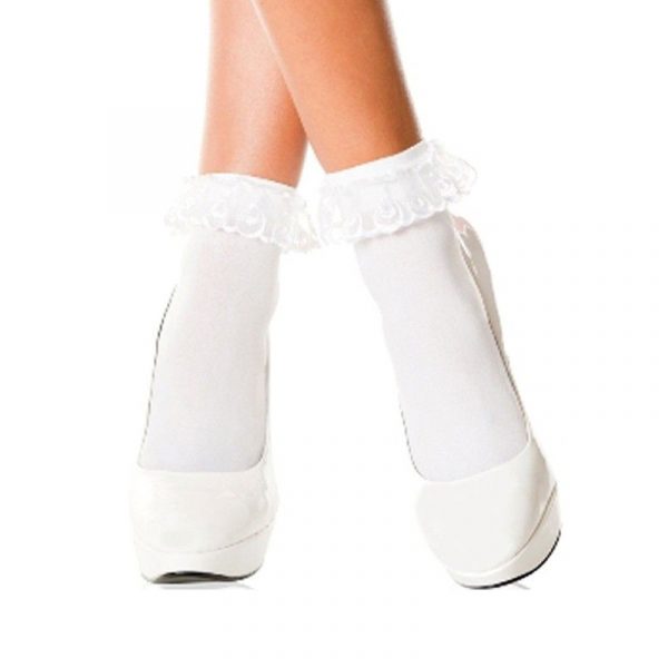 Wear a pair of nylon lace ruffle anklet socks as an accessory for a 50s Halloween costume or a sexy outfit! Choose either a black or a white pair.