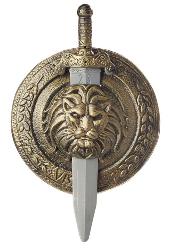 Costume Plastic Gladiator Shield Sword Set. 24″ sword. Shield is about 18″ in diameter.