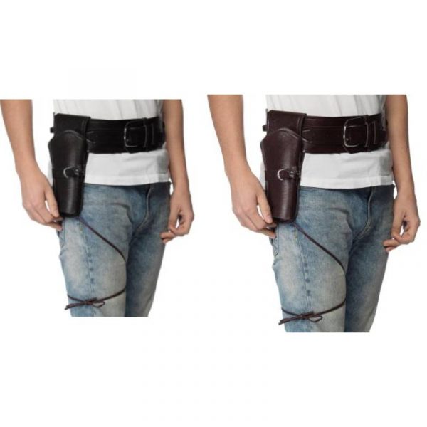 Wear this authentic-looking, costume-quality brown Western Belt and Holster as part of a cowboy or sheriff costume. Holster features laces to tie it down on your leg!